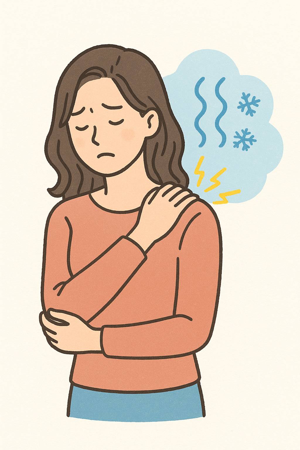 冷えによって血管が収縮し、血流が悪くなることで、筋肉や内臓への栄養・酸素の供給が滞ります。すると次のような症状が現れやすくなります。